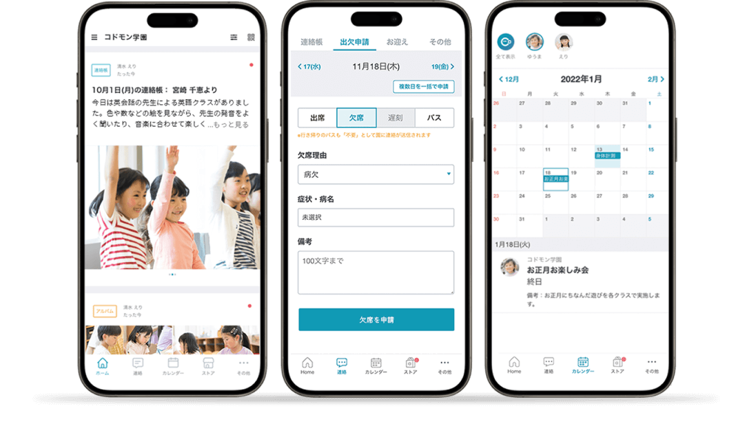 保護者からの欠席連絡はアプリで