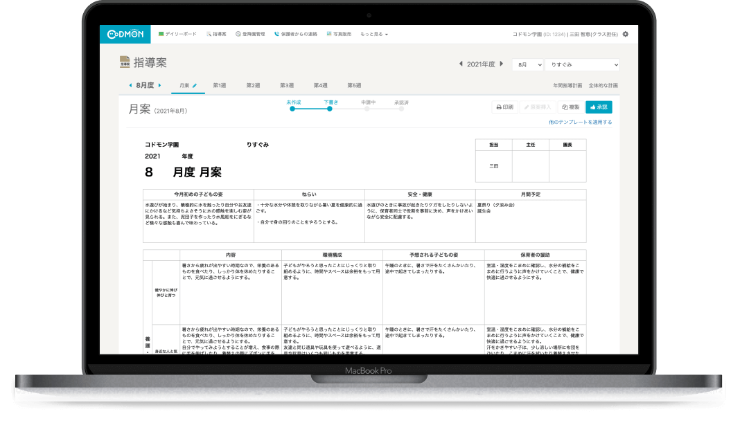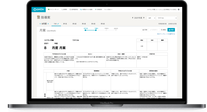 過去のデータが見やすくなった分、見返すことが増えている気がします。情報量が増えたことや自分で情報を見る機会が増えたことで、前年度の反省を活かして計画を立てるという習慣がつき、内容もとてもよくなっていると思います。日々の保育に活かすサイクルも回しやすくなり、職員もそれを感じていると思います。